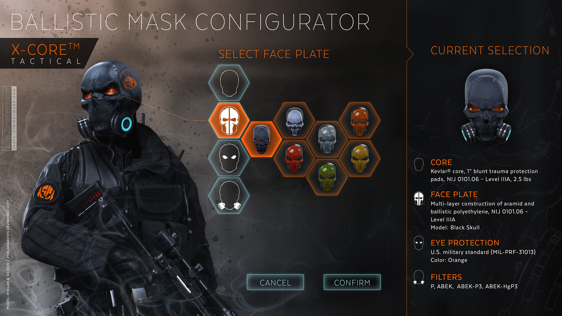 Personal project: UI mockups for a ballistic face mask configurator.